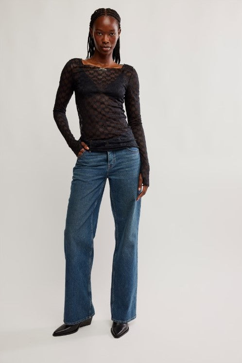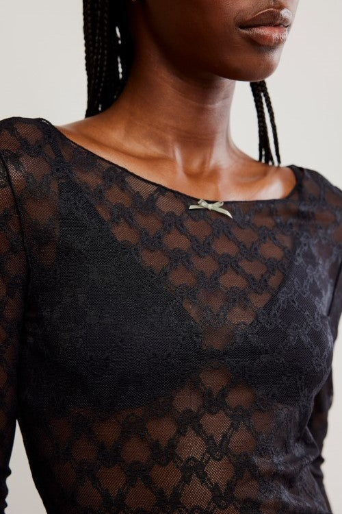 This Lace layering cami looks great under anything but we love pairing it with our favorite band tee. It features a thumbhole wrist, soft stretch, and tiny bow.