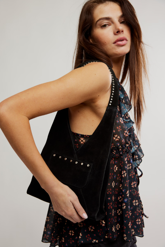 With a little bit of everything we love—soft suede, subtle studs, and a sleek shape—this bag is sure to be in our daily rotation.