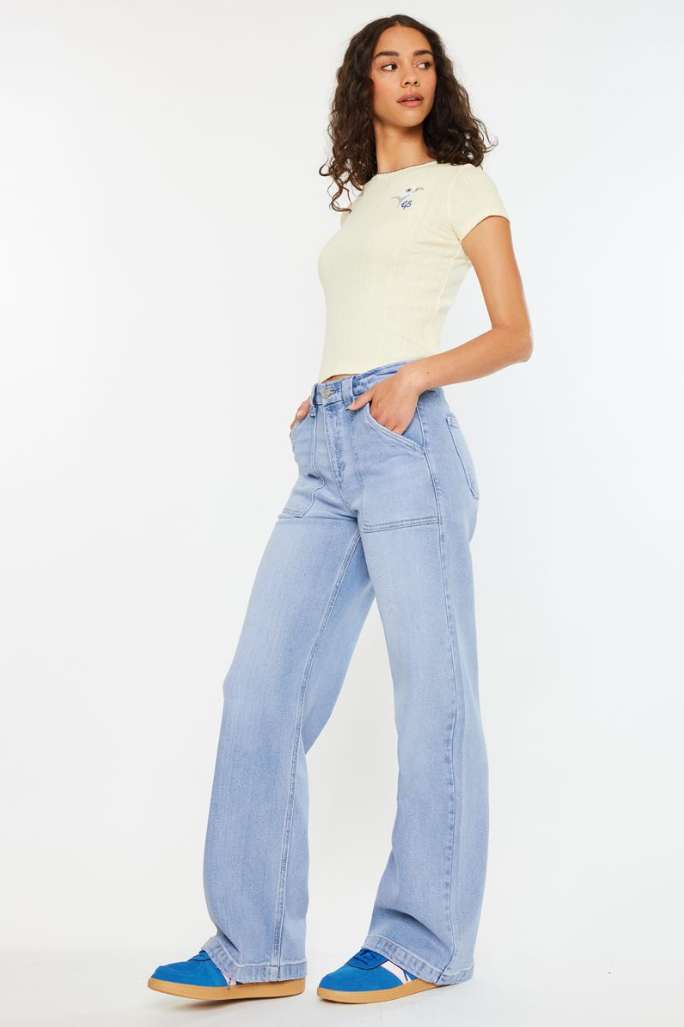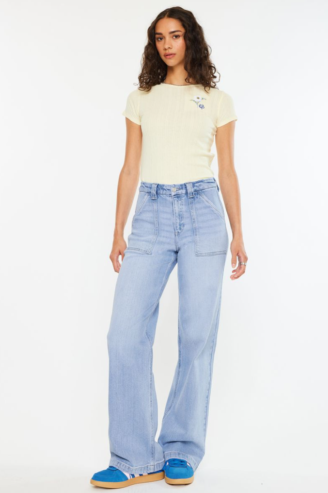 These are the perfect wide leg jeans. Throw them on with a sweater, crop top, tank top, band tee... basically any top! They just rock.