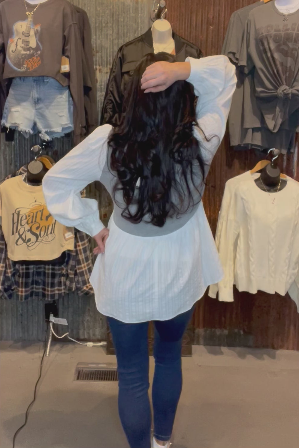 KNIT AND WOVEN COMBO LONG SLEEVES WITH CUFF ROUND NECK